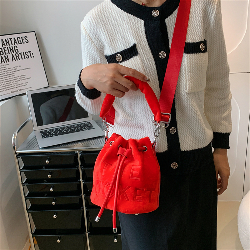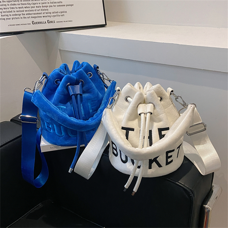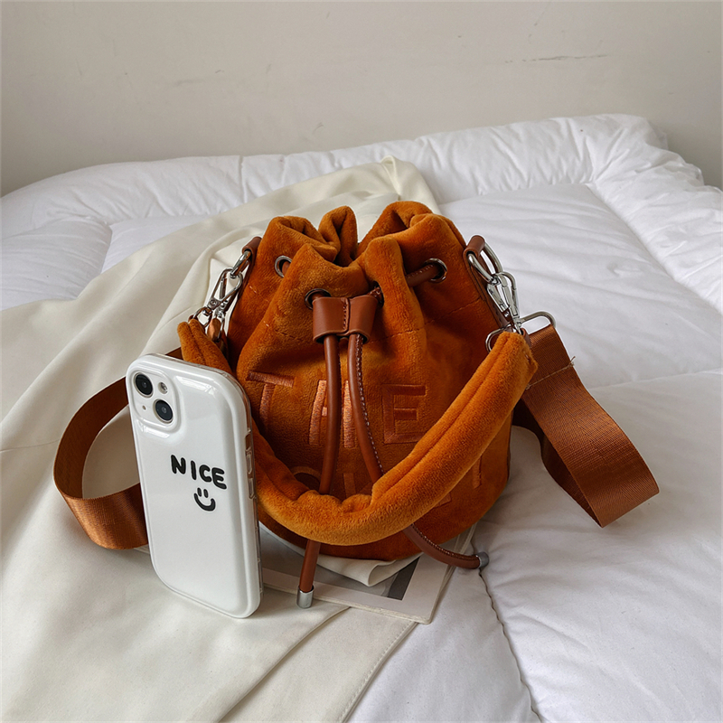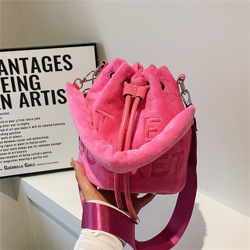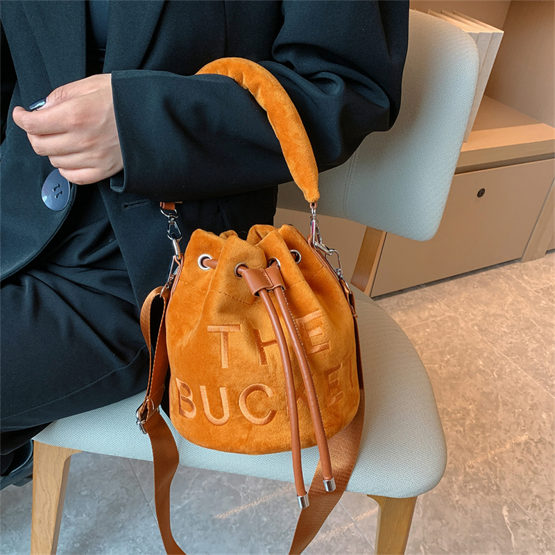 Winter Velvet Bucket Bags for Women Fashion Purses and Handbags Designer Crossbody Bag Luxury Shoulder Bag New Satchel Lady Bag